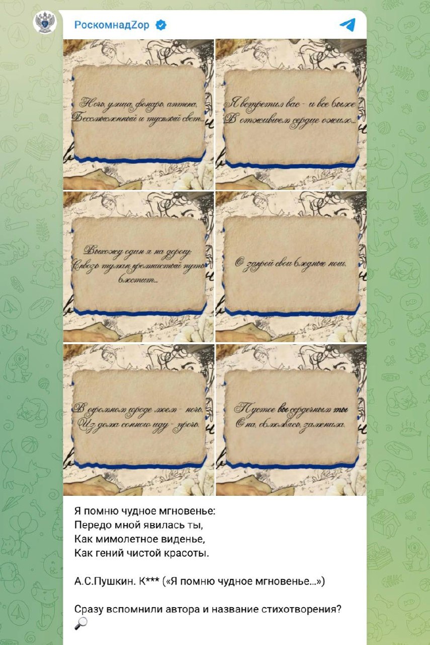 Роскомнадзор предложил россиянам почитать Пушкина в Telegram. @bankrollo